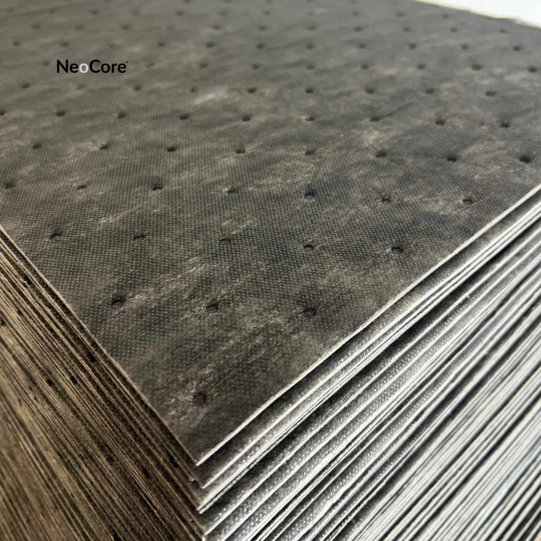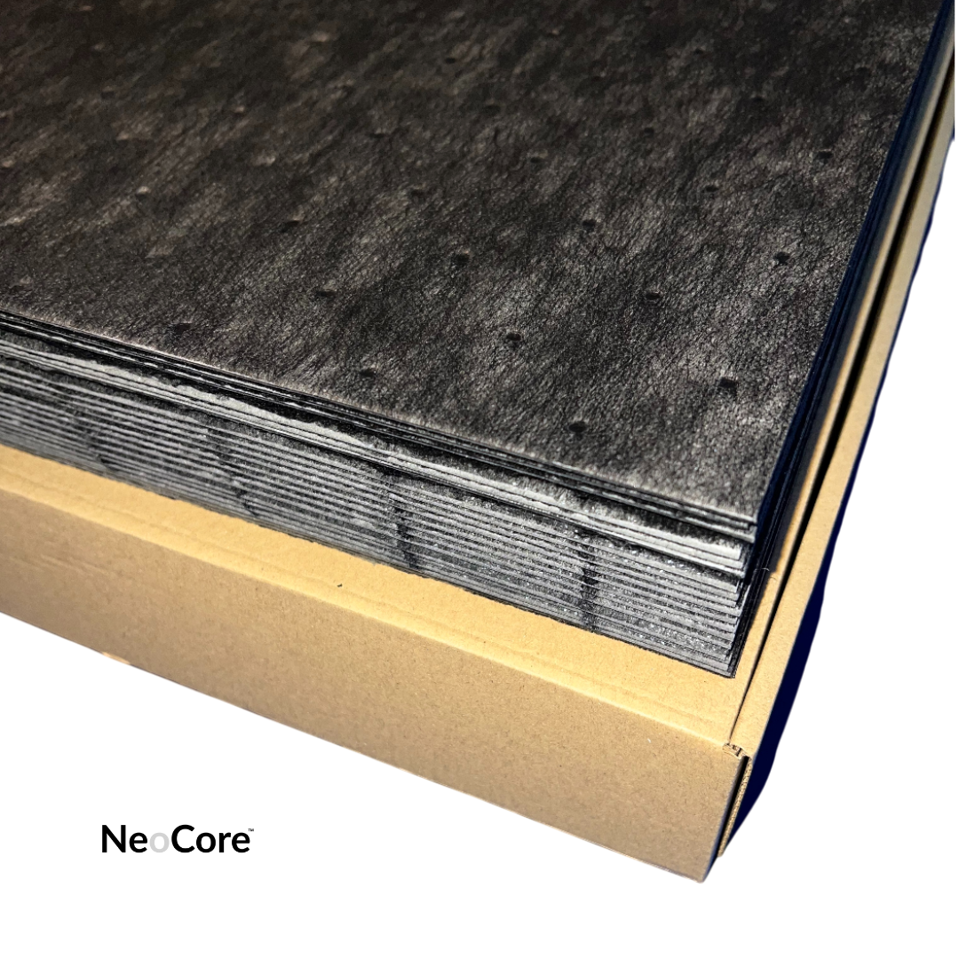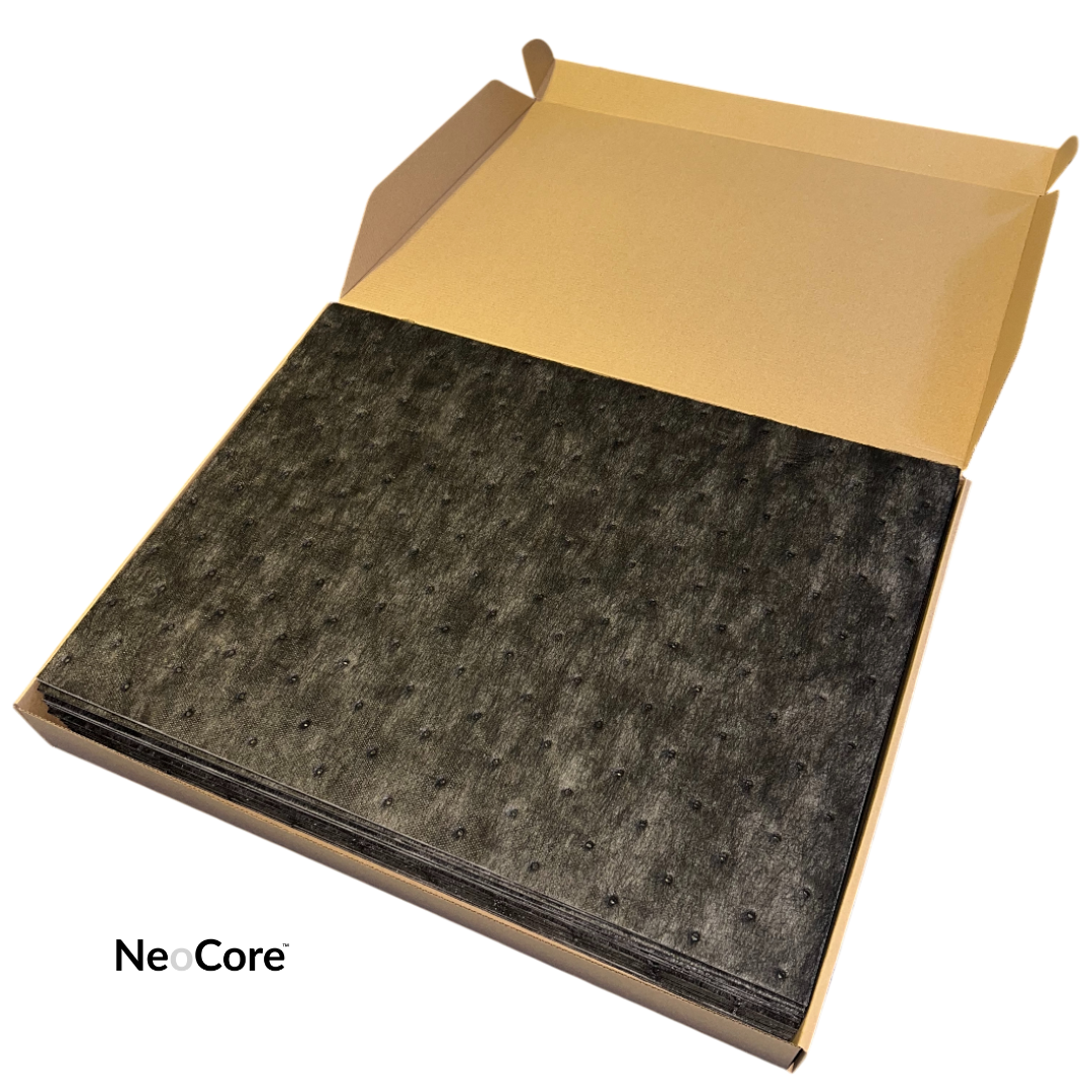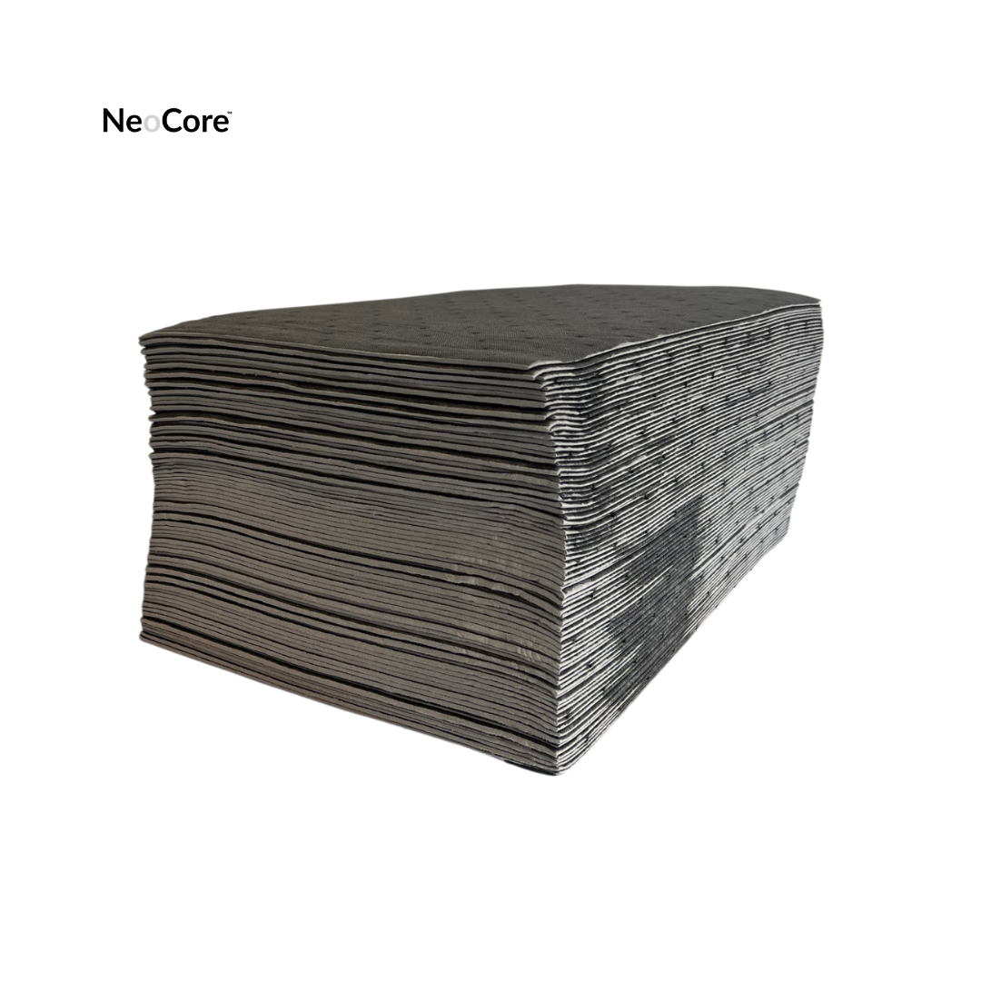 NeoSorb es la solución ideal para absorber rápidamente todo tipo de líquidos industriales, tanto aceitosos como acuosos. Con estructura resistente y bordes abiertos, cada almohadilla garantiza una absorción eficaz sin desintegrarse, incluso cuando está saturada.